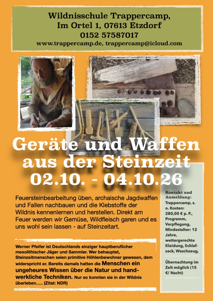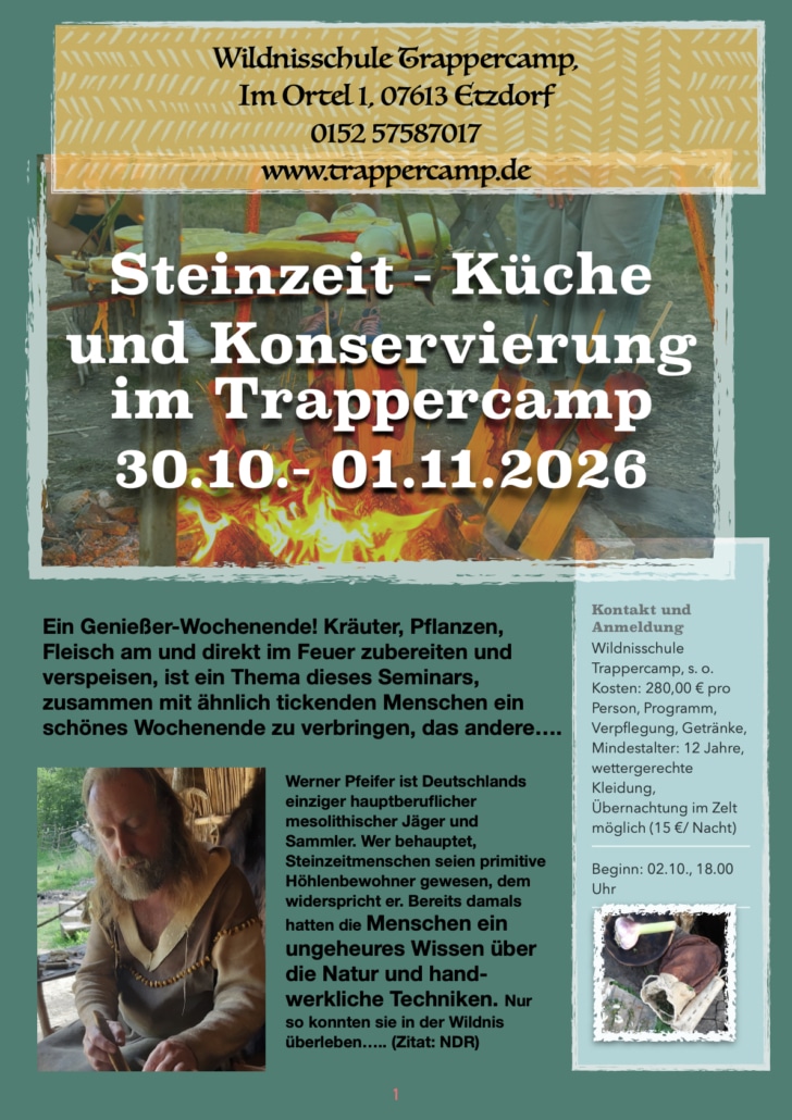 - Veranstaltungsort: Wildnisschule Trappercamp, Im Ortel 1, 07613 Etzdorf